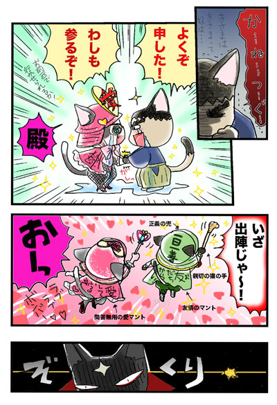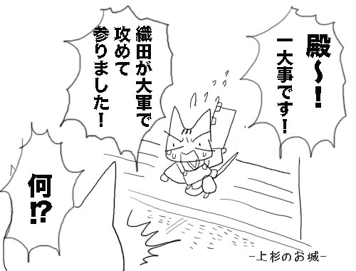 戦国猫武将の日常がなぜかのぞける不思議な絵日記です。 お好きなカテゴリーから御覧頂くのもよいかもです(*^^*)